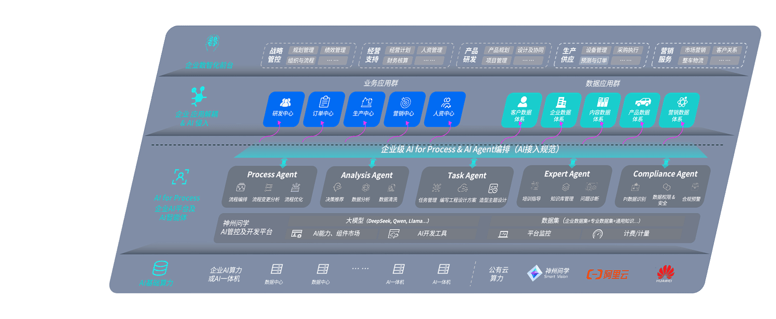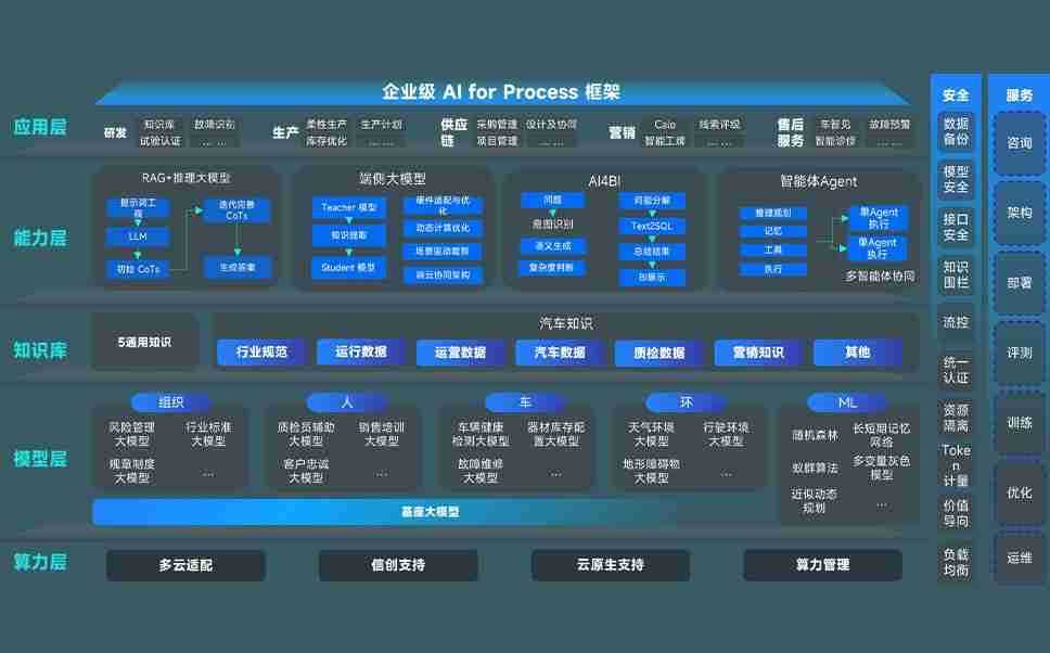 端到端的一站式AI工作空间深度融合了从企业战略规划到日常经营的全流程业务板块,,定向解决车企内部领域多、、部门多、、、、链条长、、、场景碎片化等难题,,,,支持车企快速构建以AI为核心的生产力写作体系,,,实现任务执行与AI能力的无缝集成与交互